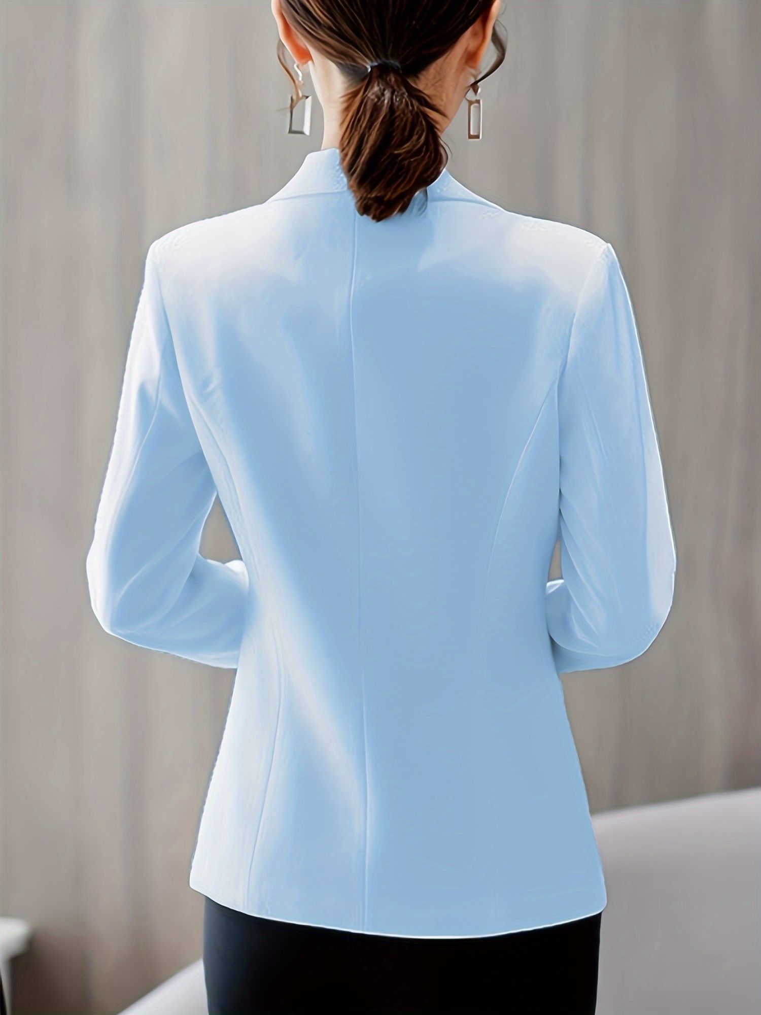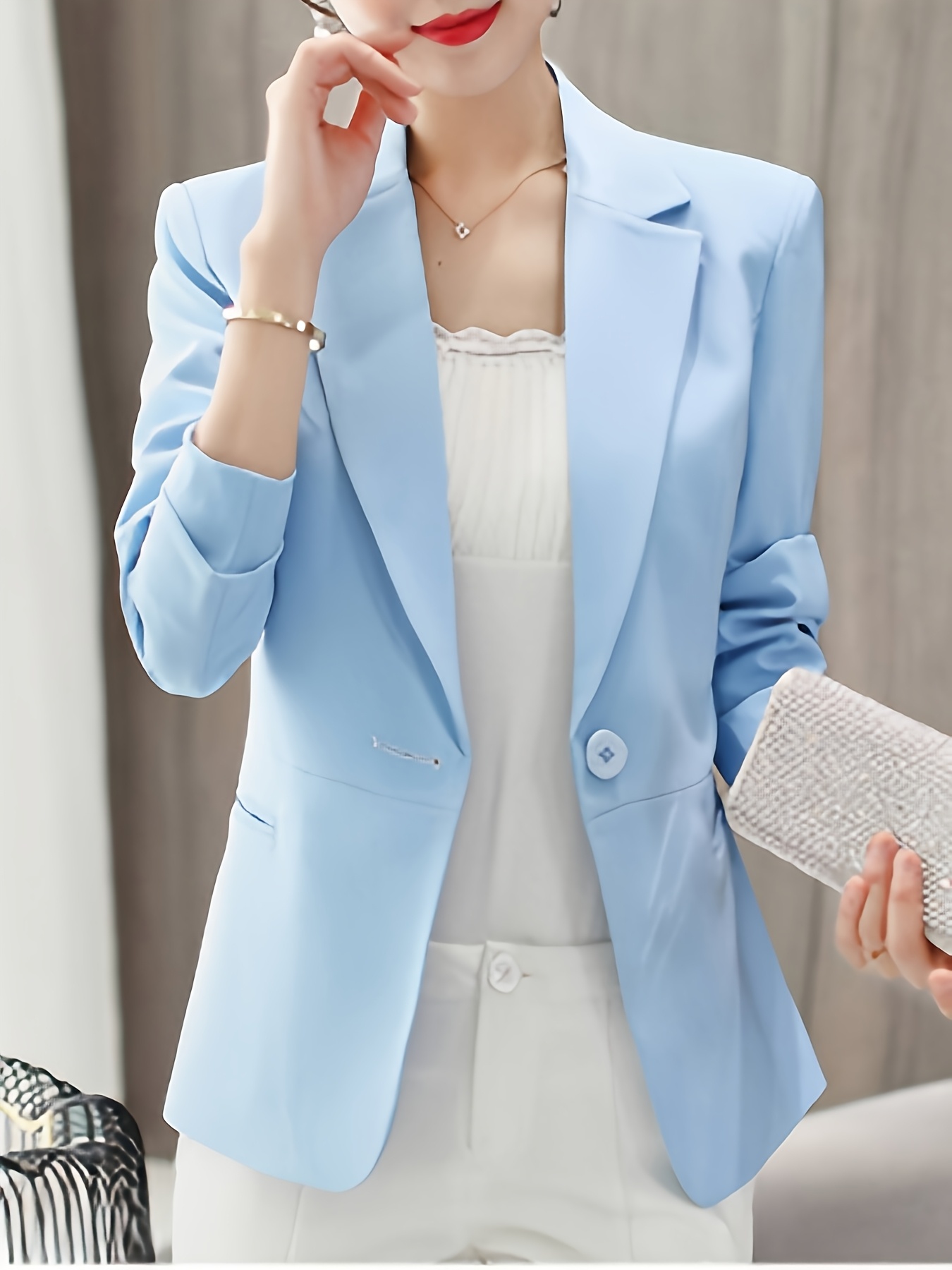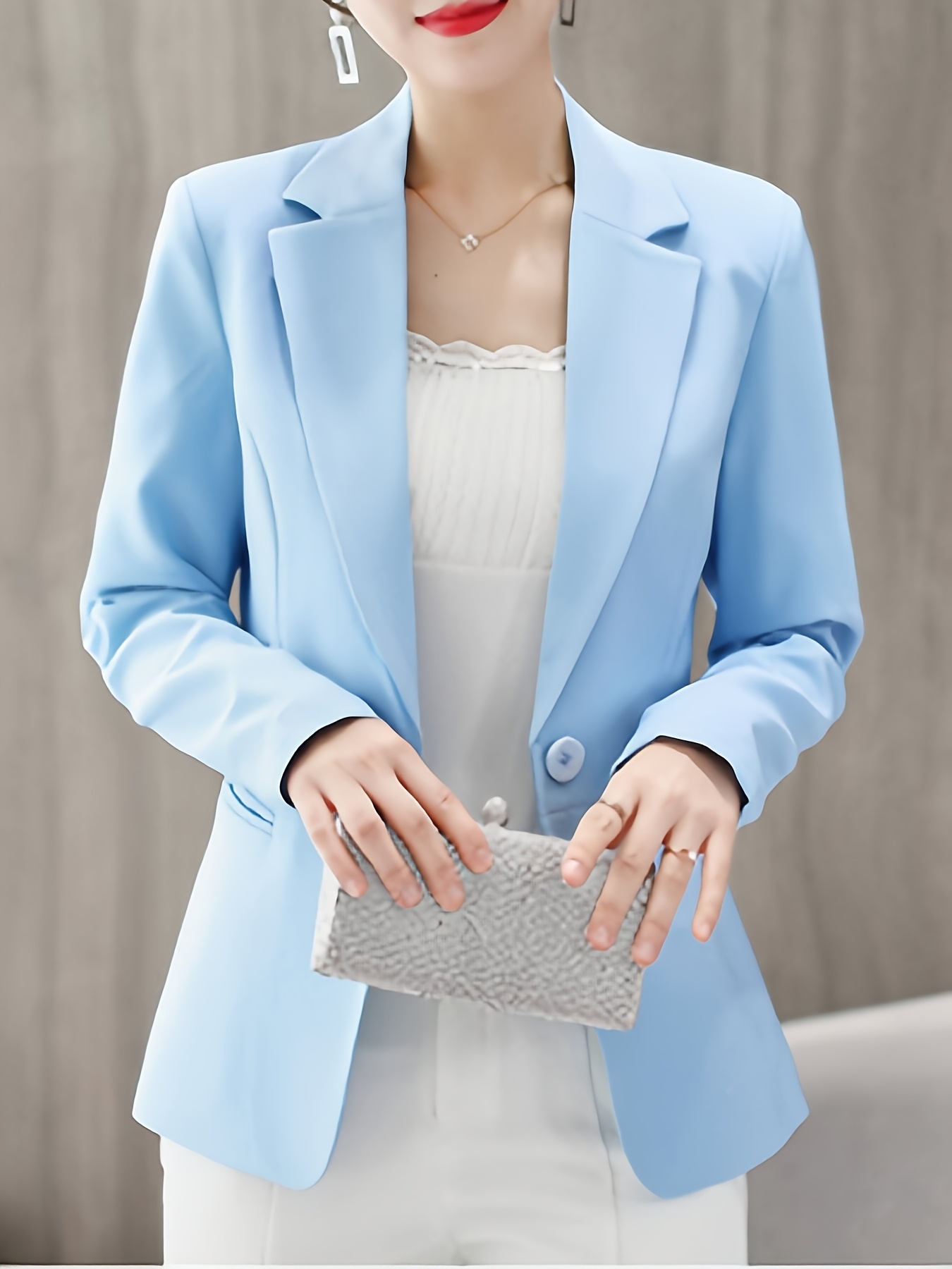 [Elegant Blazer] Polyester Elegant Light Blue Blazer | Women's Single-Breasted Long Sleeves Jacket - Regular Fit, Button-Up Design, Office Attire for Spring/Summer/Fall