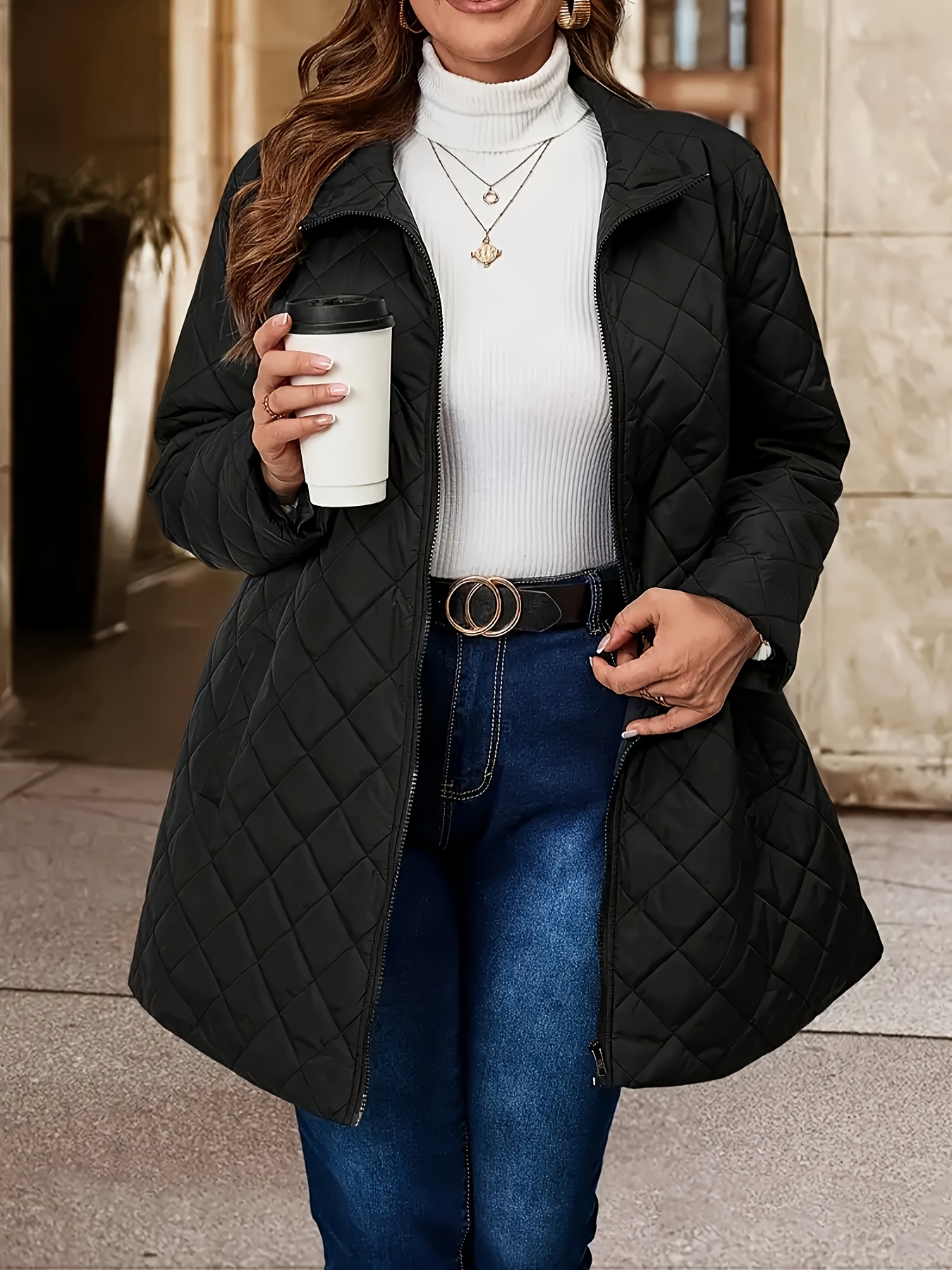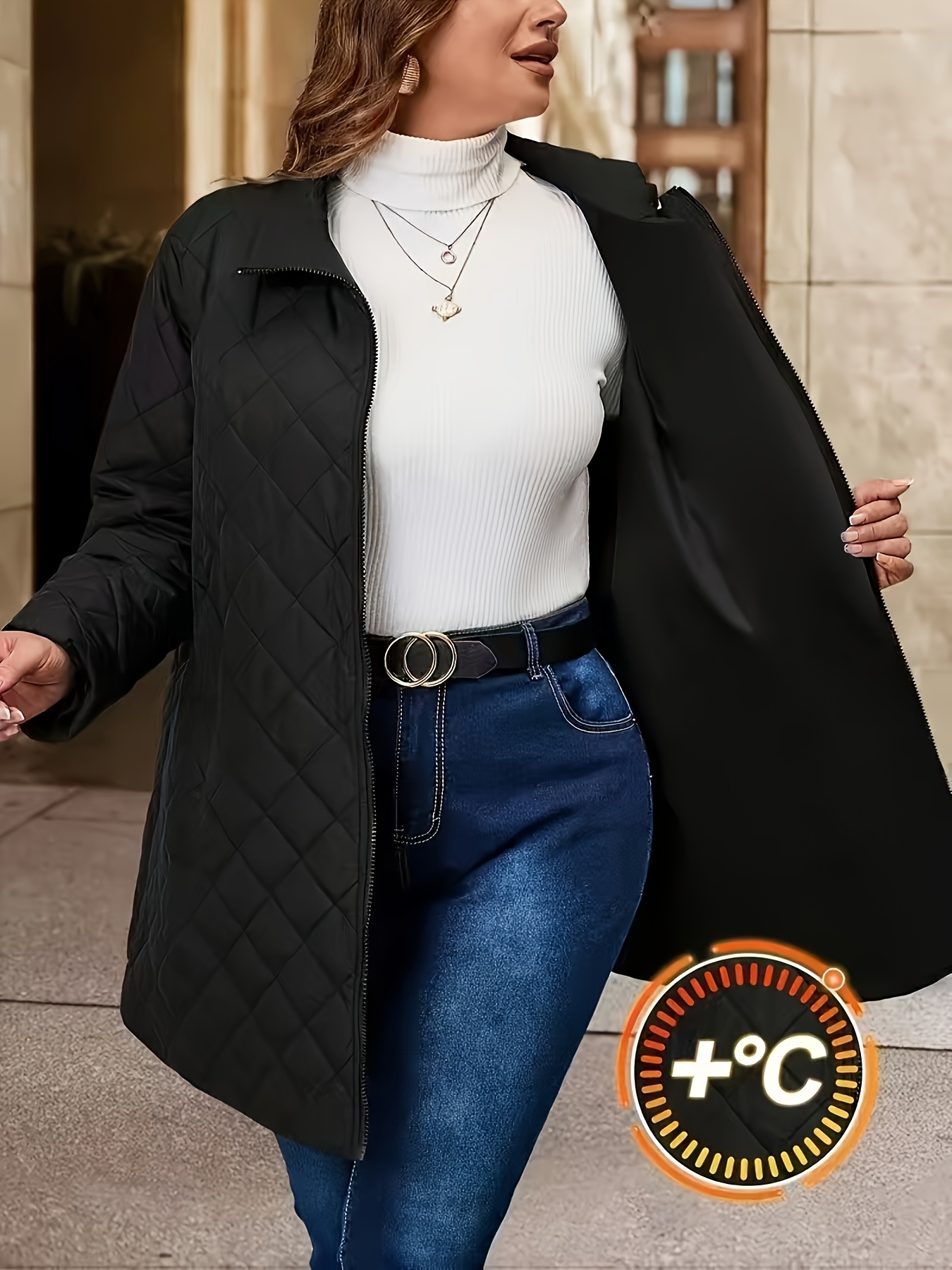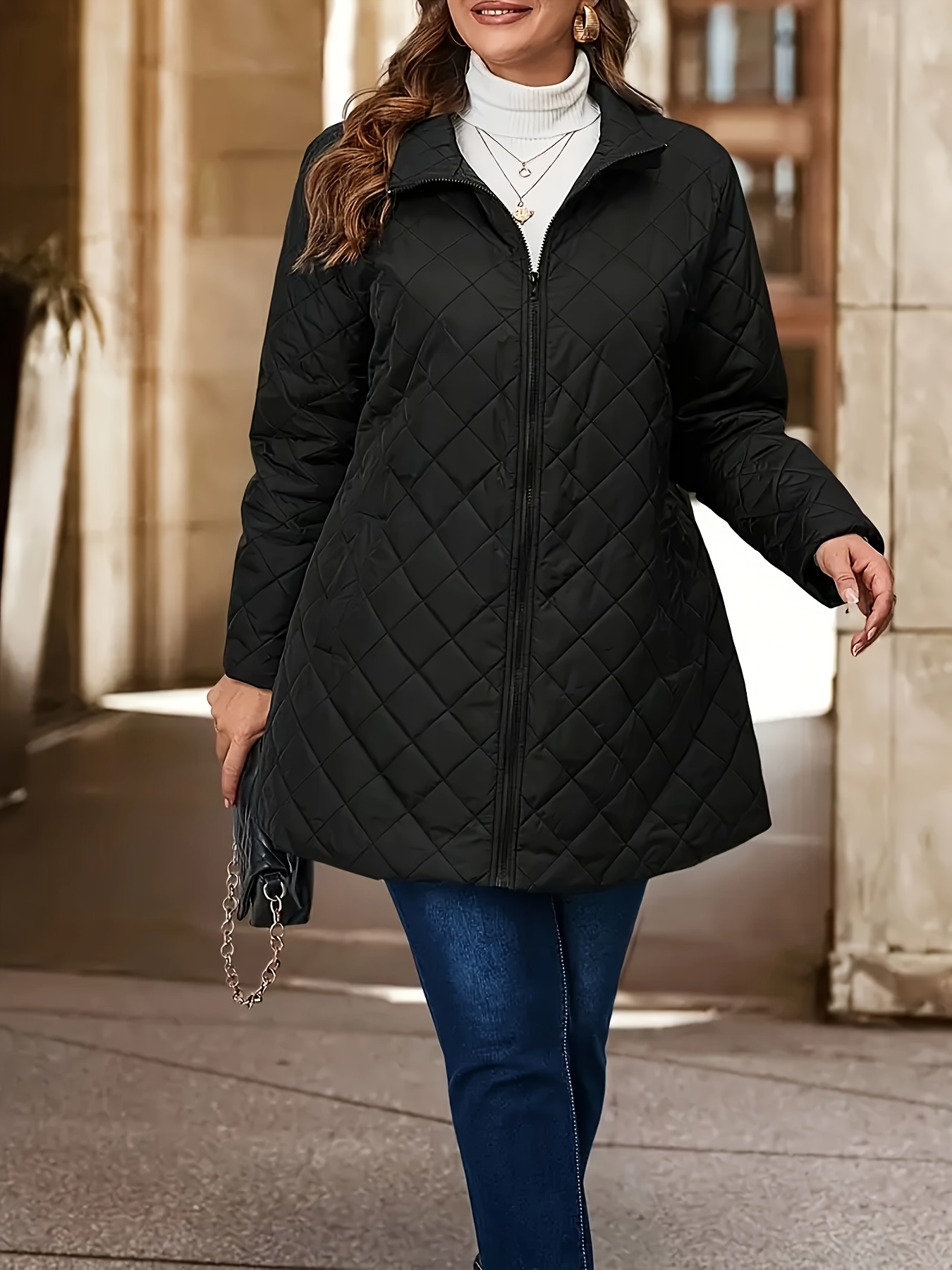 Plus Size, Women's Plus Size Winter Coat - Elegant Long Jacket with Pockets, Machine Washable Cold Weather Outerwear, Formal & Everyday Chic Outer Jacket for Women, Cold Weather Apparel, Nonstretch Fabric, Durable Construction