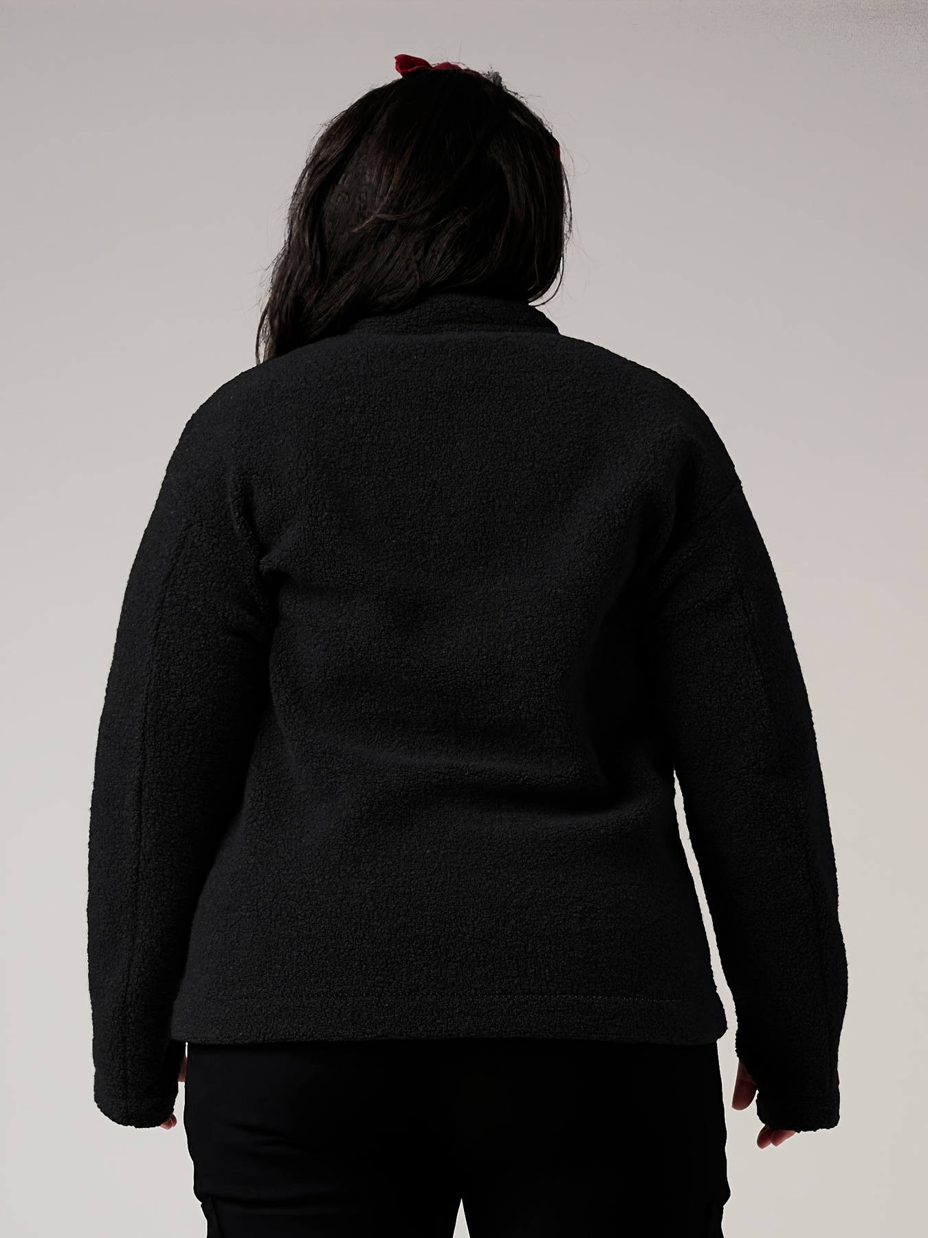 Winter Black High Collar Jacket - Outdoor Casual, Front Zipper, Hidden Zipper Insert Bag