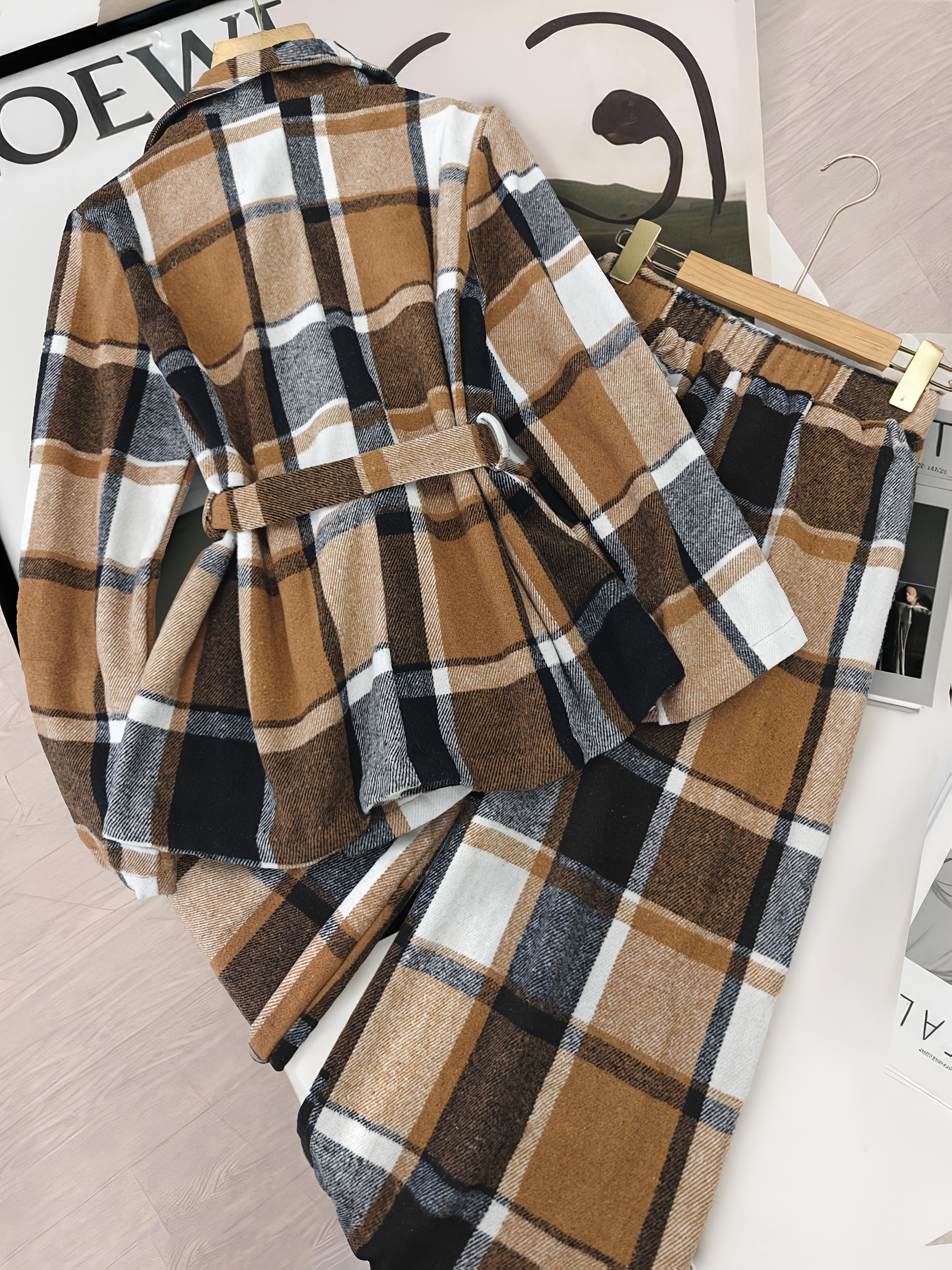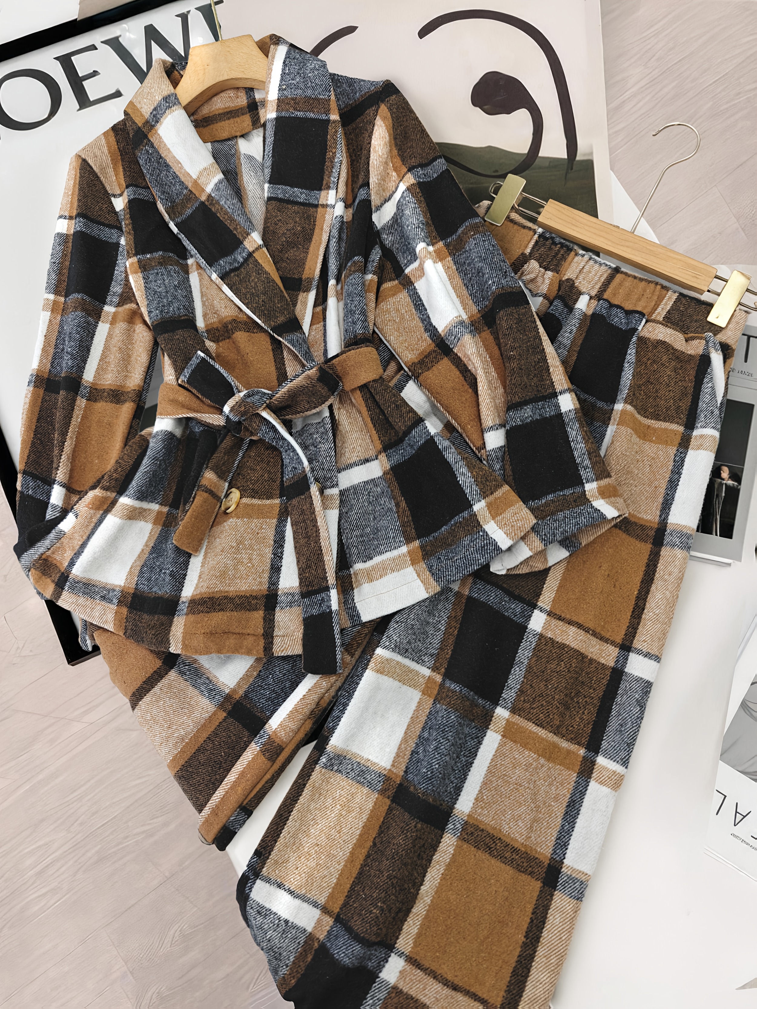 Women'S Stylish Autumn/Winter New High-End Fleece Slim Fit Tie-Up Blazer and Long Pants Suit, 2pcs Set for Office Commuting Versatile Wear, Casual Attire|Sleek Formal Attire|Sleek Design